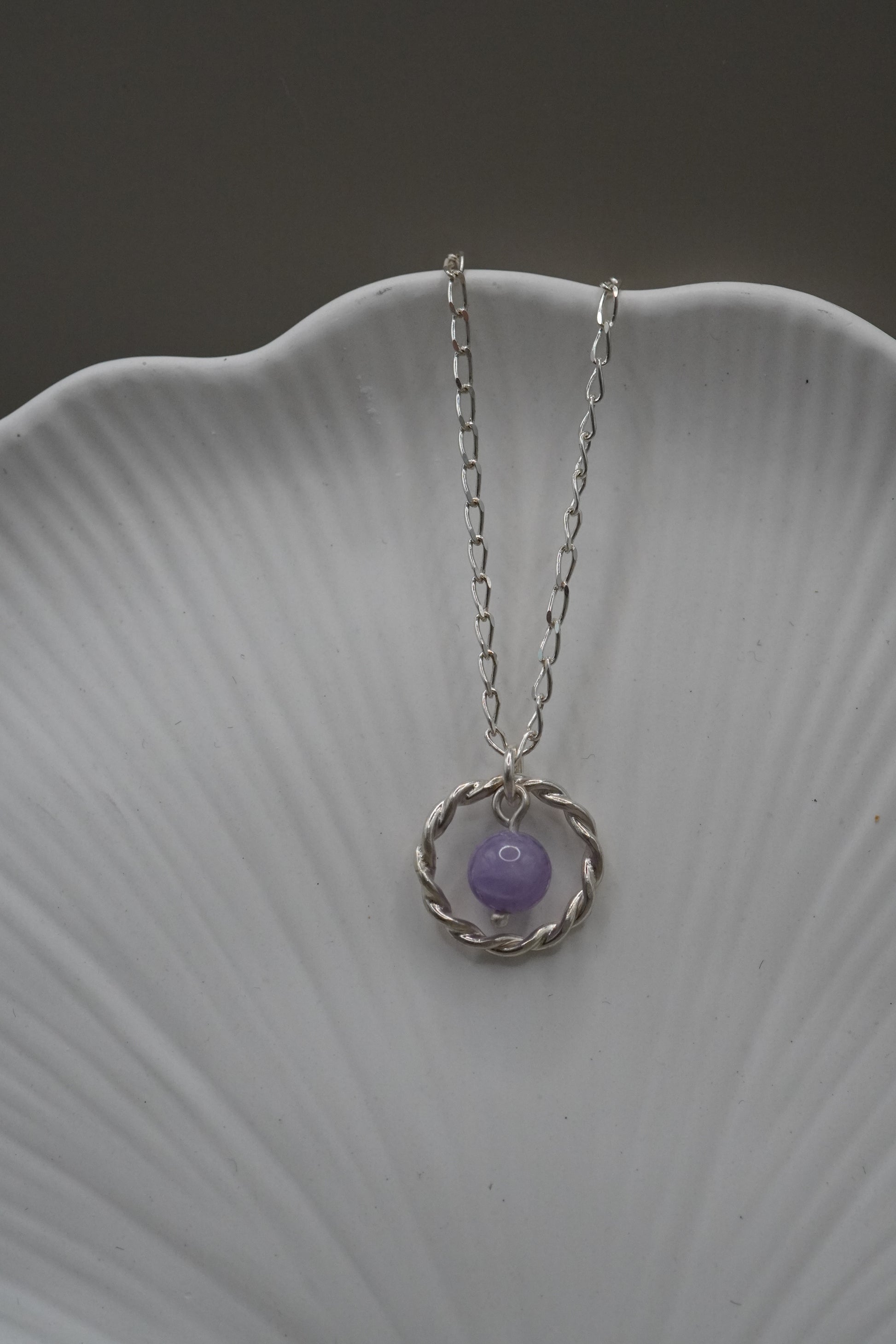 Hermoso collar hecho a mano en plata 0.925 que lleva en el centro una hermosa cuenta de amatista, una piedra que brinda calma, claridad, paz y protección. Tamaño 41.5 a 47.5cm con cadena alargadora.