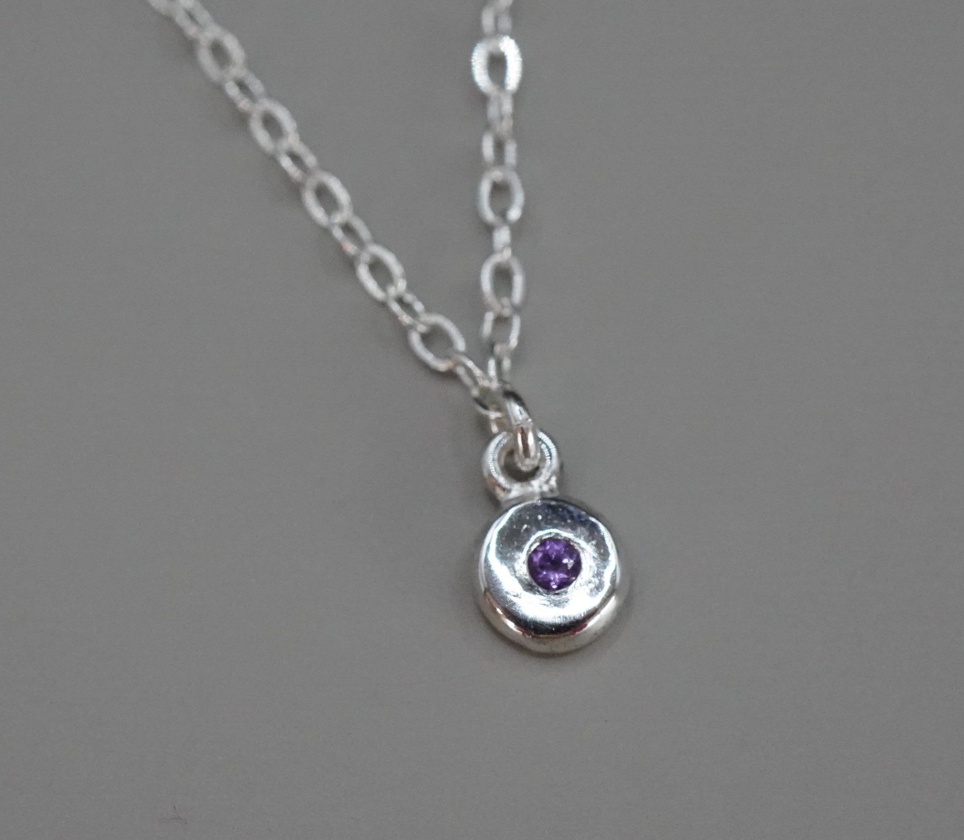 Handgefertigte Halskette aus 925er Silber mit einem eingelassenen Mini-Amethyst. Diese Halskette verleiht deinem Tag eine subtile und ganz besondere Note.