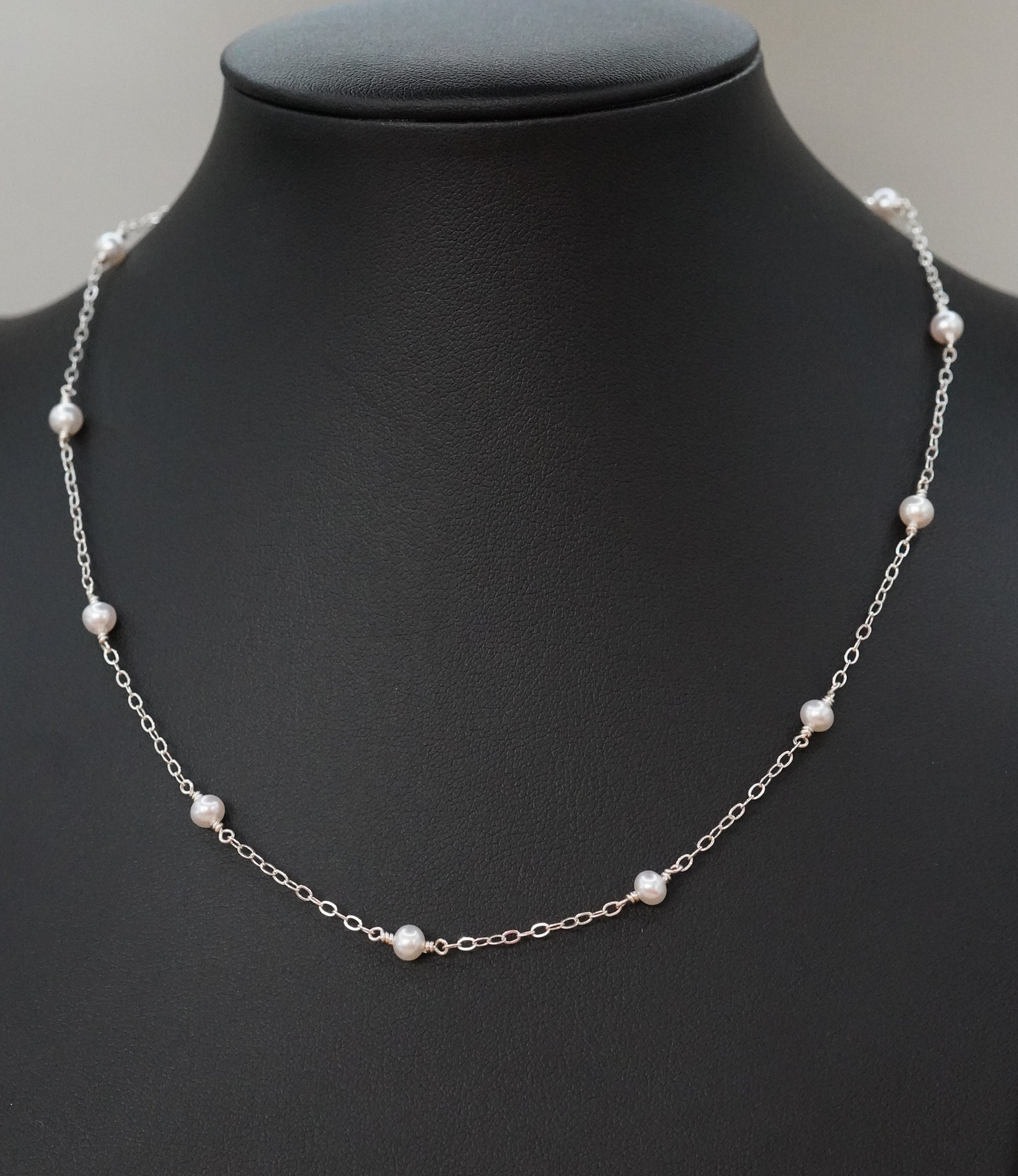 Un collar muy elegante y sutil con perlas de agua dulce pequeñitas y cadena de plata 0.925.