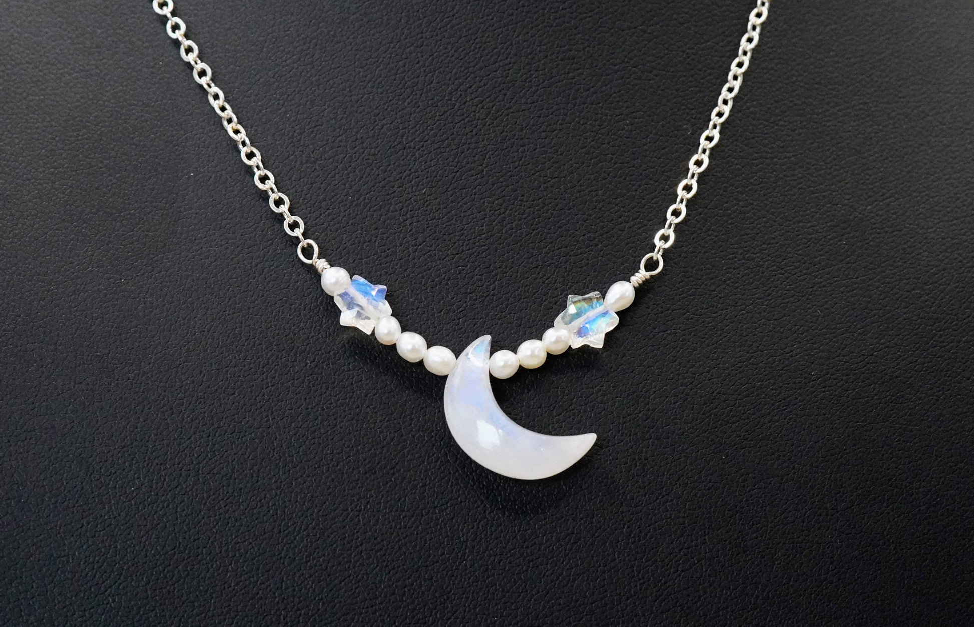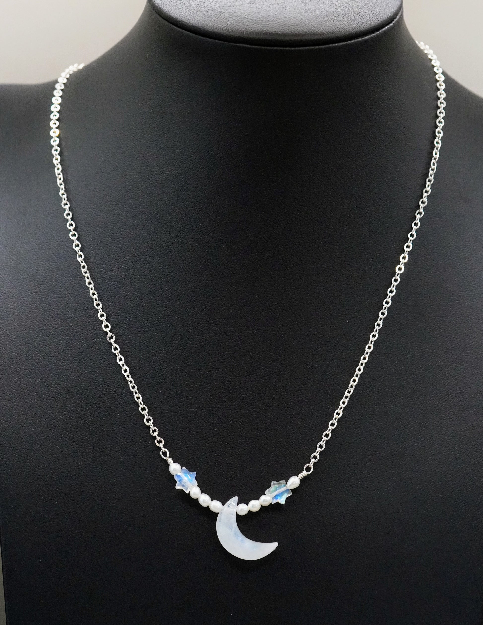 Schimmernde Sterne Halskette Mond und Sterne Mondstein