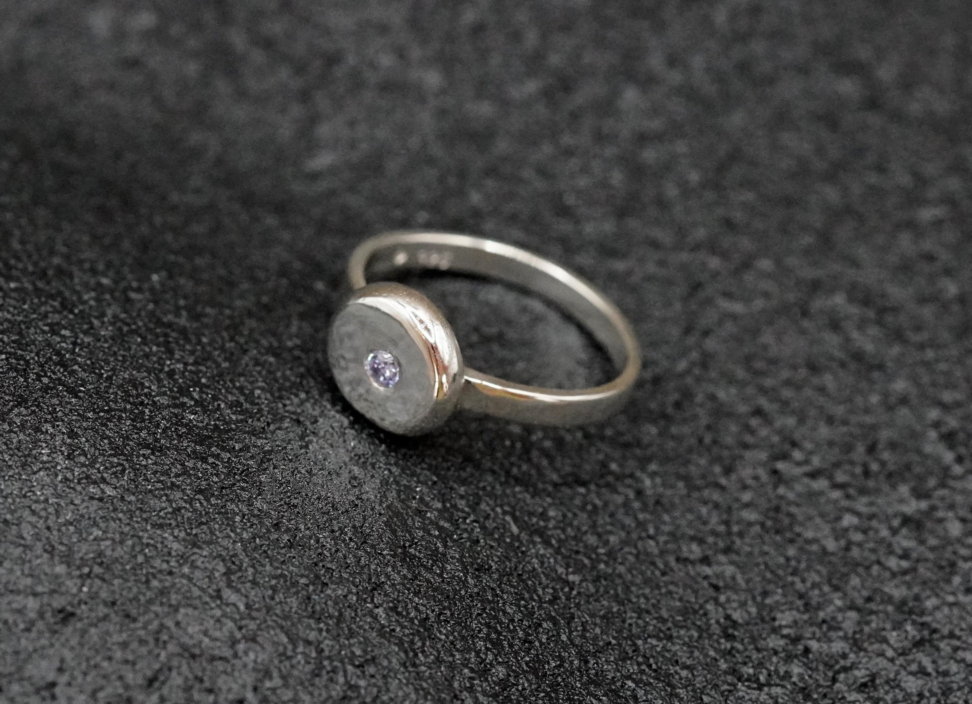 Handgefertigter Ring aus 925er Silber mit einem eingelassenen Mini-Zirkonia in Lavendel-Ton. Grösse ca 54 -55